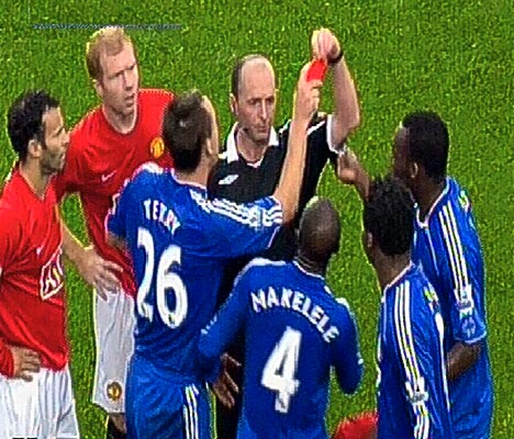 Didier Drogba strikes Nemanja Vidic to earn a red card